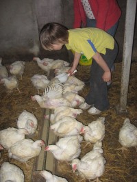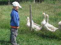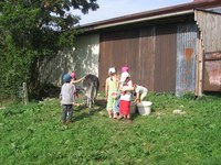 Venez fêter l'anniversaire de vos enfants à la ferme Jours de visite : mercredi et samedi Durée : après-midi (de 14 h à 17 h) Prix : 8 € par enfant (maximum 15 enfants) Si moins de 10 enfants : forfait de 80 € Au programme : Animation adaptée à l'âge des enfants. Découverte des animaux de la ferme (âne, vache, veau, cochon, mouton, chèvre, lapin et la bassecour) Soins aux animaux (Nourrir les animaux, observer, caresser et prendre soin) Promenade en char à bancs tirée par un tracteur La tenue vestimentaire doit être adaptée au temps (soleil ou pluie) de vieux habits sont souhaités et les bottes en caoutchouc sont indispensables même s'il fait beau car nous allons dans les prairies et dans l'étable. Le goûter est apporté par les parents (gâteau et boissons) de la vaisselle est à votre disposition. Chaque anniversaire sera organisé en présence d’un ou plusieurs parent(s). (maximum 4 adultes)