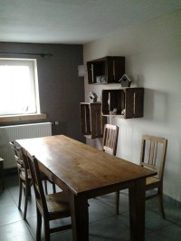 Gite à la ferme 5/6 p 3ch ECC R de ch : hall, vestiaire 1° étage : séjour avec poêle au bois, coin cuisine (cuis élect, four élect, MO, lave vaisselle, frigocongélateur ,…),buanderie (machine à lessiver et fer à repasser) salon (TV). 1 ch (2x1p) + lit bébé disponible, SDD (D,Lav) WC séparé . Terrasse meublée. Chauffage centrale 2° étage : 1ch ( 2x1p) + coin détente, 1ch (1x1p) + lit d’appoint (1x1p) Picto : New, Ferme en activité, Internet : www.ferme-stree.be Détails des prix :