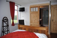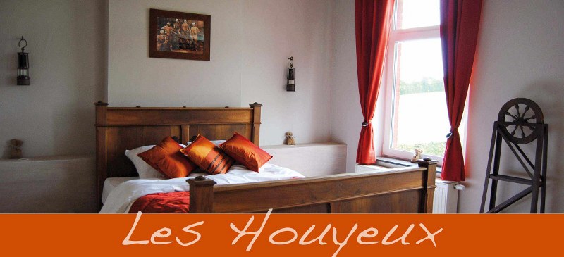 Chambres « des Houyeux » 2p 1° étage : 1chambre ( 1x2p, douche,WC,lav) Les 5 chambres sont décorées avec goût, elles possèdent une salle de bain privative ainsi qu’une TV et une connexion internet. Au rez-de-chaussée, un coin salon ainsi qu’un grand living pourvu d’une cheminée ancienne et une grande terrasse vous accueille pour déguster un petit déjeuner du terroir. Chauffage centrale dans toute la maison.