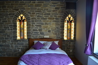 Chambre « Val Dieu » 2 personnes R de ch : chambre accessible aux personnes à mobilité réduite (1x2p, douche, WC, lav) Les 5 chambres sont décorées avec goût, elles possèdent une salle de bain privative ainsi qu’une TV et une connexion internet. Au rez-de-chaussée, un coin salon ainsi qu’un grand living pourvu d’une cheminée ancienne et une grande terrasse vous accueille pour déguster un petit déjeuner du terroir. Chauffage centrale dans toute la maison.